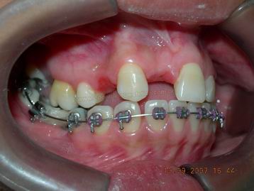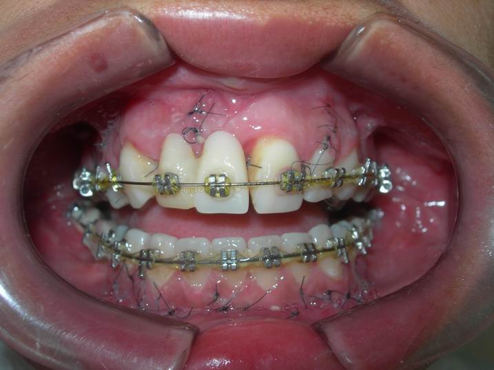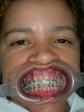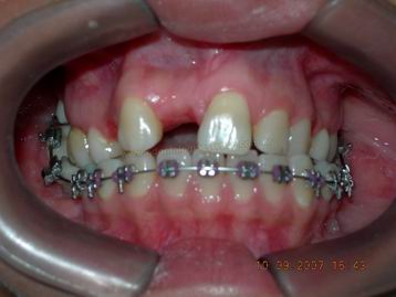 FASE AVANÇADA DO TRATAMENTO ORTODÕNTICO APÓS ABERTURA DE ESPAÇO PARA A INSTALAÇÃO DE DOIS IMPLANTES |