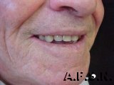 Caso reabilitado por substituição de dentaduras bi-maxilares em paciente de 75 anos, sexo masculino, com gengiva artificial caracterizada (cor natural) e palato incolor.