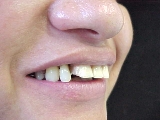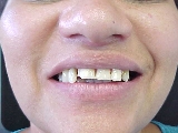 Reabilitação parcial com extração total dos dentes superiores e confecção de prótese total (reabilitação do maxilar superior por dentadura, com "gengiva" artificial caracterizada)