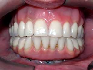 الحالة السريرية المخططة وتعامل على أنها دليل وجود اتجاه الابتسامة طب الأسنان الجمالية والتعبير عن ابنه المريض. وكان المعيار لاختيار أسنان اصطناعية تقييم المظهري تشابه بين الاثنين. وجاءت مراحل التجميع للأسنان الأدلة تقنية أسنان دقة السجلات ، وبالتالي القضاء على ارتداء الإطباقية المعتاد خلال تركيب الطرف الاصطناعي ، والحفاظ على كفاءة المضغ التشريح والإطباق. الوقت بين عملية جراحية وزرع تركيب الأطراف الصناعية : 30 ساعة.