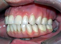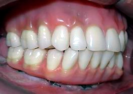 Aspecto final das prótese com gengivas artificiais caracterizadas (movimentos mastigatórios)