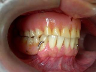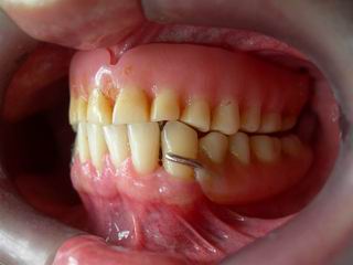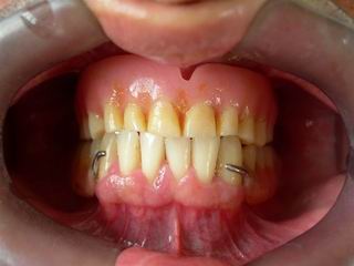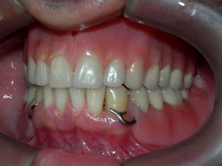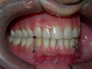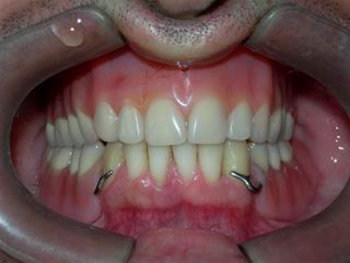 Caso clínico planejado e tratado para reestabelecer a harmonia facial e recomposição do padrão articular observando critérios estéticos da análise facial. A "gengiva artificial" foi prensada com resina modificada para dar efeitos semelhantes à gengiva natural.