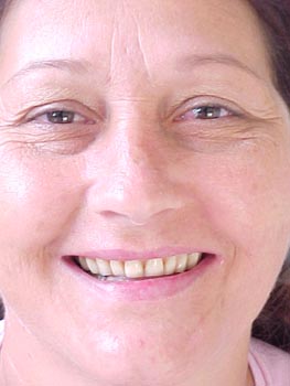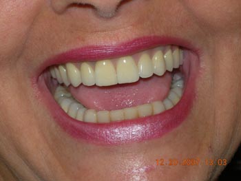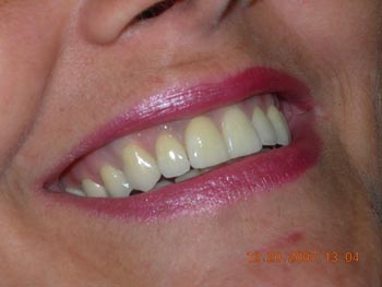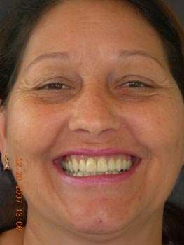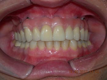 Vista frontal após correção ortodôntica e finalização da protocolo com dentes individuais em metalocerâmica