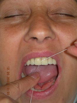Nesta técnica, os dentes separados permitem o uso do fio dental em todos os espaços
